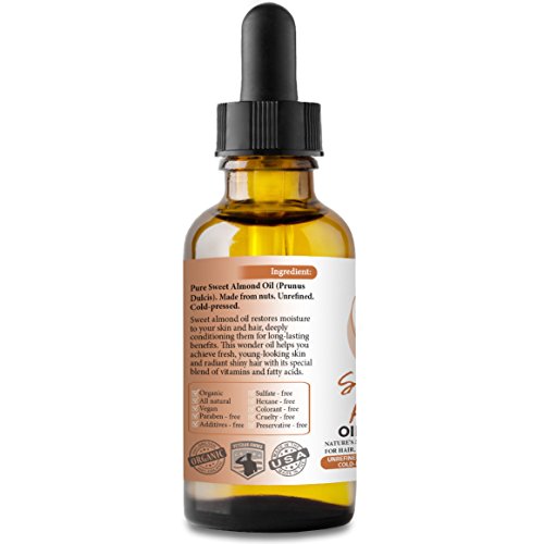 Almonds can nourish your body with their fatty acids, and sweet almond oil can do the same for your skin and hair. Sweet almond oil restores moisture to your skin, deeply conditioning it for long-lasting benefits. With Vitamins A, B and E, this wonder oil locks moisture into your skin for quick, effective absorption. Sweet almond oil helps you achieve fresh, young-looking skin with its special blend of vitamins and fatty acids. Sweet almond oil is gentle enough for all skin types, bringing out the best in everyone.