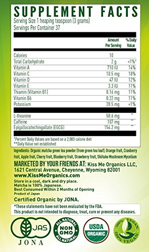 Vita Matcha - Organic Japanese Matcha Infused with 100% Natural Fruit Vitamins - 4oz (113 grams) - Antioxidant and Fat Burner - Boosts Energy,...