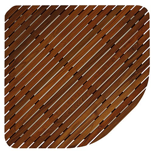 Bare Decor 30 by 30-Inch Erika Corner Shower Spa Mat in Solid Teak Wood and Oiled Finish, X-Large