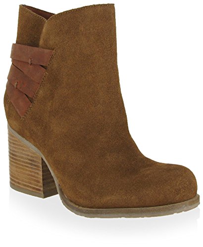 Studio : Mia Publisher : Mia Binding : Shoes Product Description A blocky, near-demi wedge heel contrasts with a delicate, tulip-like topline in the MIA Genessa ankle boot, which features a sleek upper of grainy suede with crossed leather heel straps. A medial zipper allows easy on/off, while maintaining the clean look. 0