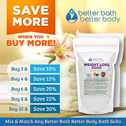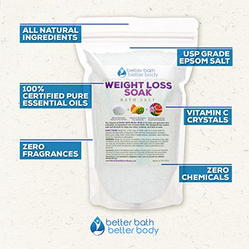 Support your weight loss regimen with this All Natural Weight Loss Bath Salt, including Pure Epsom Salt Essential Oil ingredients to promote your health wellness! *PURE EPSOM SALT BASE* The primary ingredient in this Weight Loss Bath Soak is Epsom Salt (Magnesium Sulfate). Epsom Salt is known to have many positive health benefits and makes the perfect base. We use only USP Grade Epsom Salt of the highest purity and quality possible. *NATURAL GERANIUM GRAPEFRUIT ESSENTIAL OILS* Next, we add essential oils for your body mind to absorb during your bath. Grapefruit Essential Oil Geranium Essential Oil both have countless properties that help promote wellbeing, including weight loss. *NEUTRALIZING VITAMIN C CRYSTALS* To help you enjoy the best possible bath experience, we also add Vitamin C Crystals to the "Weight Loss Bath Salt." Vitamin C Crystals naturally "latch on" to any chlorine and ammonia molecules lurking in your bathwater. *ZERO ADDITIVES - PURE BATH SALT INGREDIENTS* Unlike many other bath soak products and bath salts, this "Weight Loss Bath Salt" does not include perfumes, dyes, or other harmful ingredients. We take great pride in creating a healthy, natural, pure product that you'll love! Results will vary. No specific weight loss results are guaranteed Please consult with your doctor or primary physician before starting any weight loss program. BATH SALTS GIFT SET Bath salts make a wonderful gift. Mix and match this bath salt with other flavors to get a discount and create a complete bath salt gift set for your loved one. 0 |