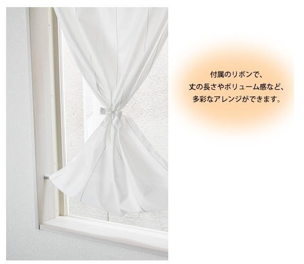 | 今の住宅に多い、幅がせまく縦長の窓用に開発した小窓用レースカーテン。上下にポール通しができるような仕様になっており、共生地のタッセルがついているので、様々な形にアレンジができるのが魅力です。テイジンの機能性生地「すずしや」を使用し、遮像・遮熱・UVカットと多岐に渡る効果をもたらします。シンプルな2配色のストライプ柄で合わせやすく、現代の住宅事情にマッチします。日本製。 |