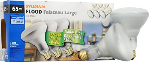 Keep your home looking warm and bright with floodlight bulbs that are on the cutting edge of energy efficiency - Sylvania BR30 65-Watt Flood Light Bulbs. Brighten your home with 65 watts of power. Not only will rooms look great filled with full, white light, these bulbs have a long life and use a standard E26 base. Perfect for recessed downlight cans and track light fixtures, and with a lifespan of up to 2,000 hours, you'll be able to brighten up any room, any day with Sylvania BR30 65-Watt Flood Light Bulbs.Feature