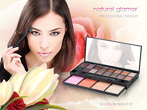 -. Binding : Misc. -. Brand : Natural Glamor -. Feature : This set includes 2 bronzer powders, 2 blushes, 16 eyeshadow shades and a double headed makeup eyeshadow sponge / High quality eyeshadow, blush and bronzer for a flawless and clean look / The nude color collection is perfect for all skin tones and leaves a natural look for daily use / The 16 eyeshadow shades are highly pigmented and perfect for accenting the eyes / Lightweight and comes with a compact mirror for easy traveling and application -. Label : Natural Glamor -. Manufacturer : Natural Glamor -. ProductGroup : Beauty -. ProductTypeName : BEAUTY -. Publisher : Natural Glamor -. Studio : Natural Glamor -. Title : Natural Glamor 20 Color Professional Eyeshadow Palette/ Make Up Kit with Bronzer, Blush Brush and Compact Mirror