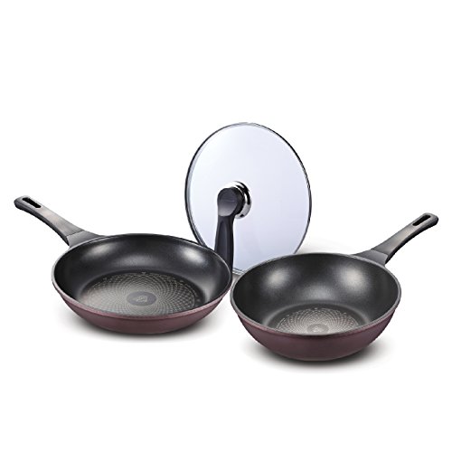 PN's KBFP-3PSET comes with a 28cm fry pan, 28cm wok pan, and a universal glass lid for both items. The fry pans are coated with non-stick coating that has been approved by FDA for safe use and contains no lead or cadmium.