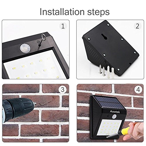3.Simple Installation This solar motion sensor light can be mounted on the wall with provided wall plug and screws in seconds, no cable or wire necessary.
