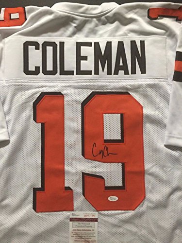 Autographed/Signed Corey Coleman Cleveland Browns White Football Jersey JSA COA