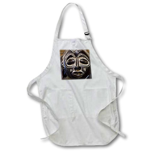 3dRose South Africa, Durban, Zulu Tribe Mask-Af42 Cmi0179 - Cindy Miller Hopkins - Full Length Apron, 22 by 30-Inch, White, with Pockets (apr_69536_1)