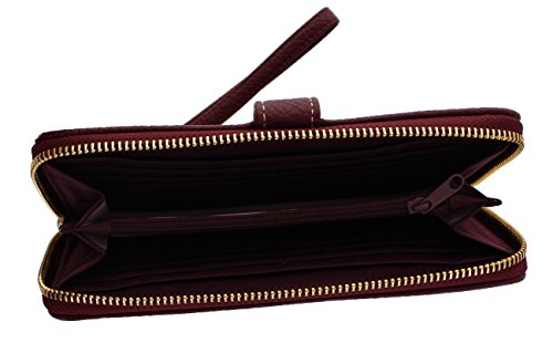 -. Binding : Apparel -. Brand : Tahari -. Department : womens -. Feature : • Measures 7.75" x 3.50" x 1". Red Pebble Faux Leather. / • RFID Blocking Protection Will keep your identity Safe from Thieves that can scan your wallet / • Zip-around Section with 2 open compartments, 2 open pockets, 12 credit card slots and 1 zipper pocket for coins / • Large front Pocket with Snap Closure. / • New Tahari 2 Tone Name Plate -. ProductGroup : Apparel -. ProductTypeName : ACCESSORY -. Size : One Size -. Title : Tahari Cosmo Cash Tab Zip Around Wristlet With RFID