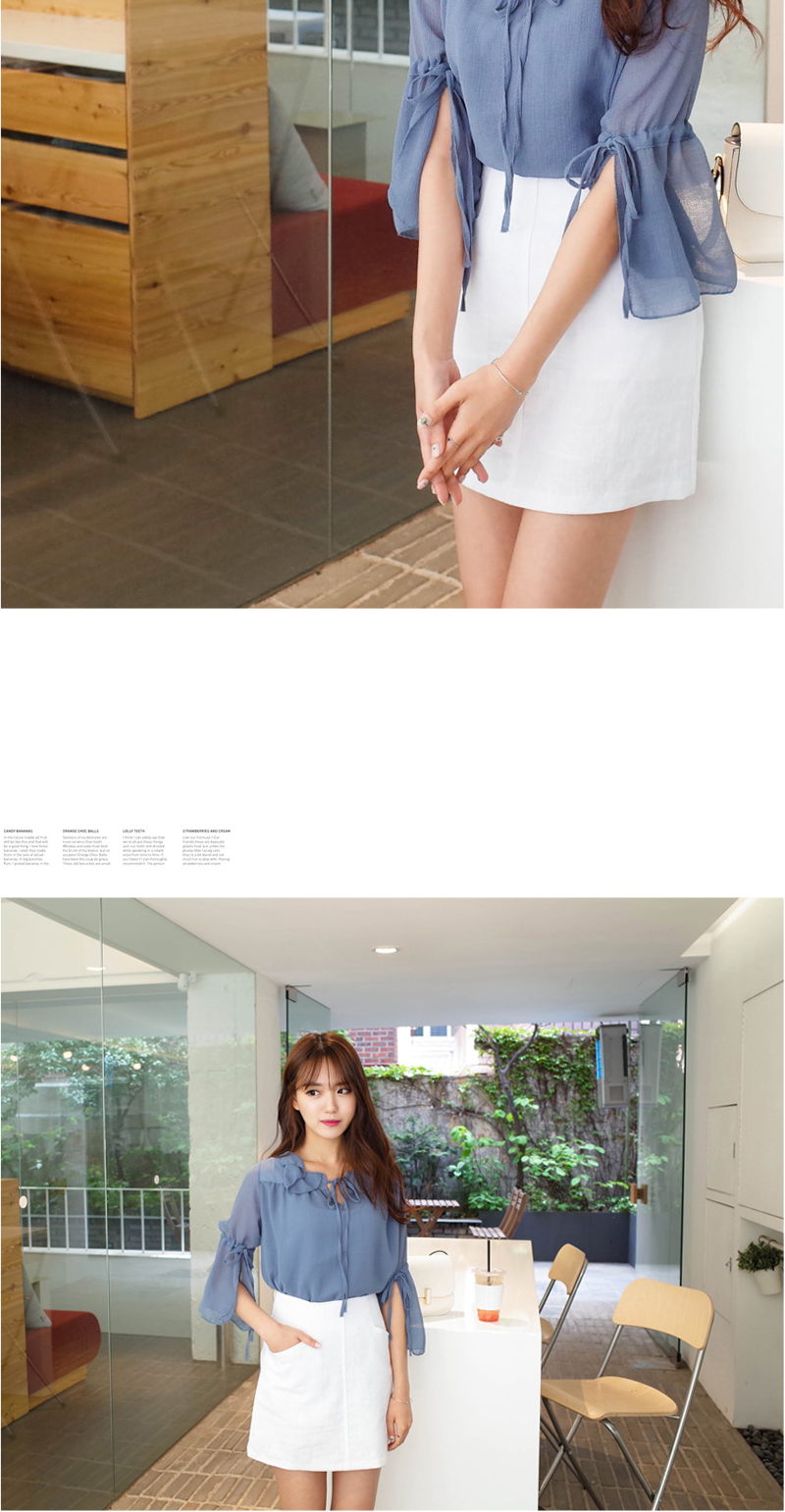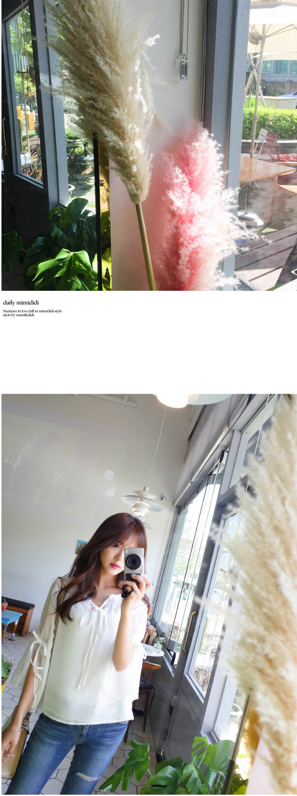 넥라인의 리본과 소매의 리본으로 러블리함을