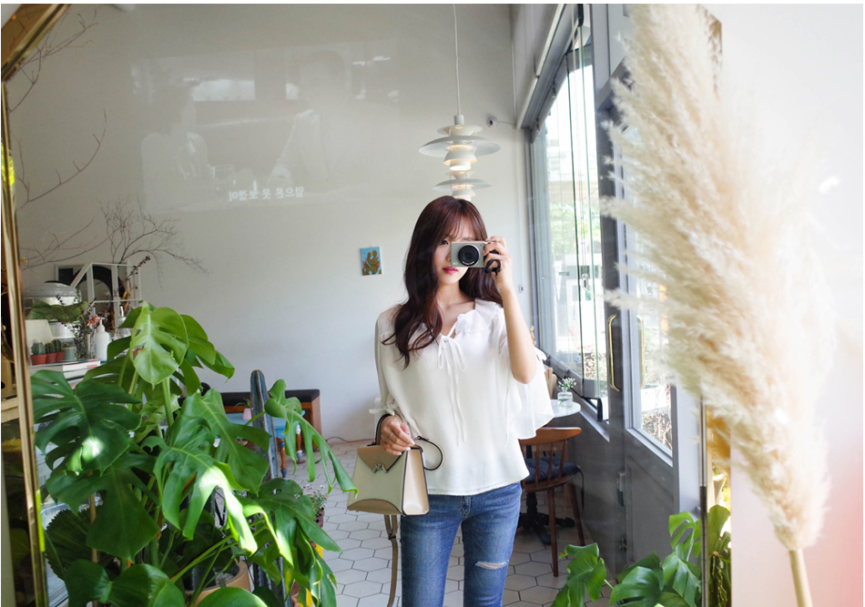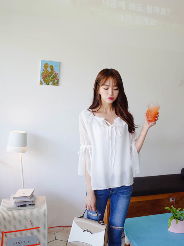 러블리한 프릴카라가 예쁜 블라우스예요:)