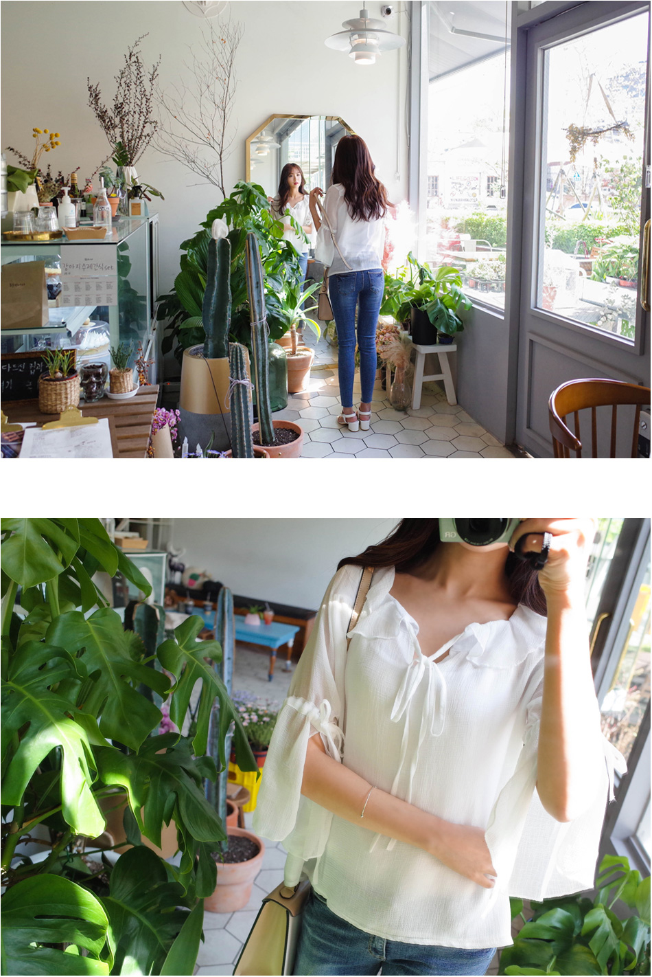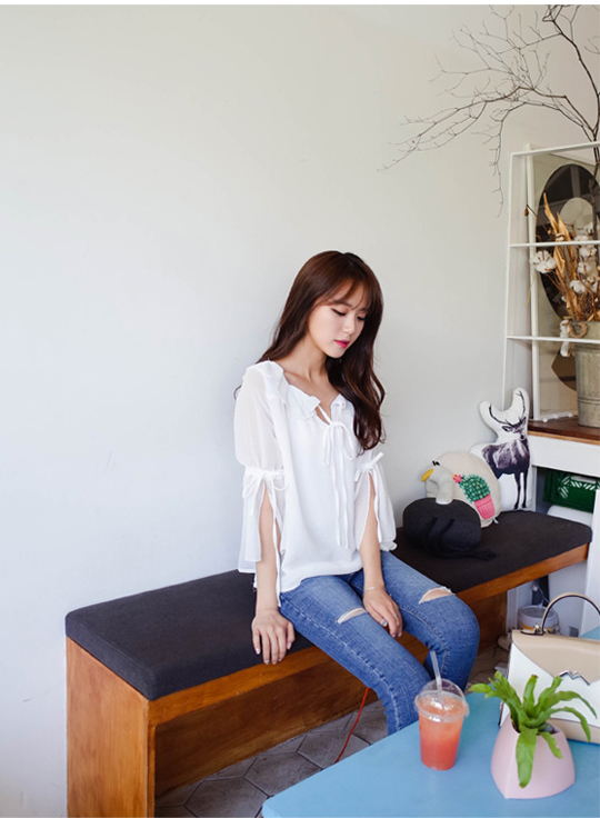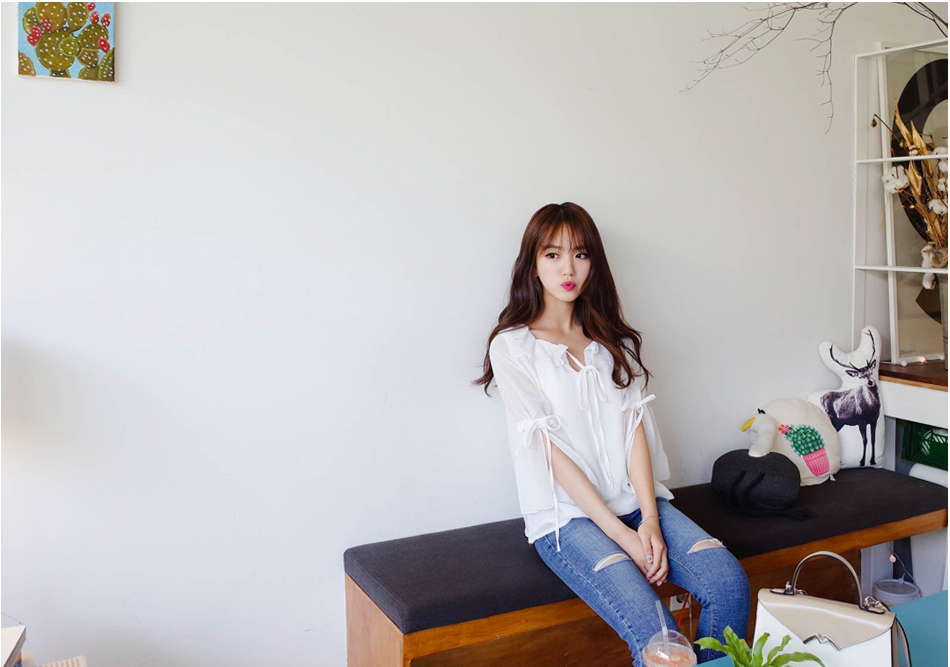 비침이 있어서 더욱 스원해 보였던 블라우스로