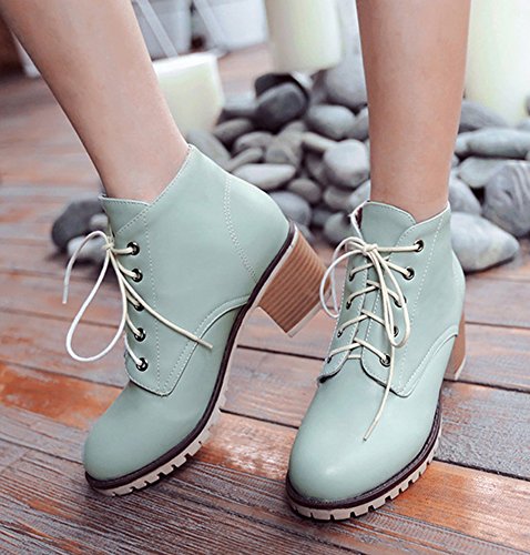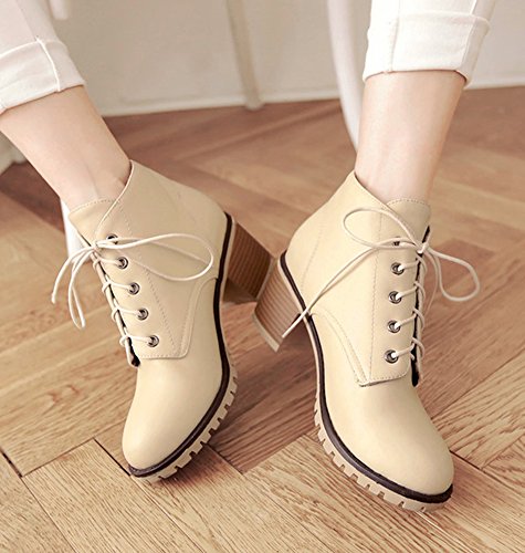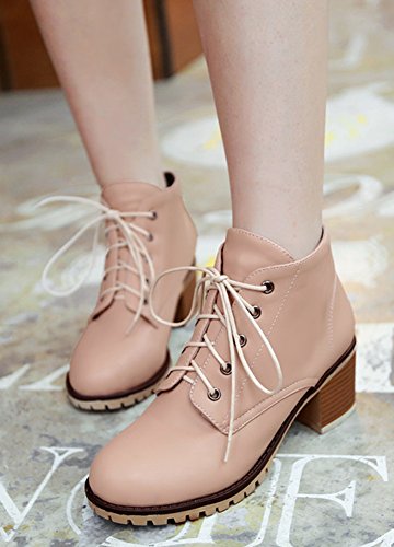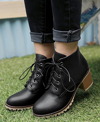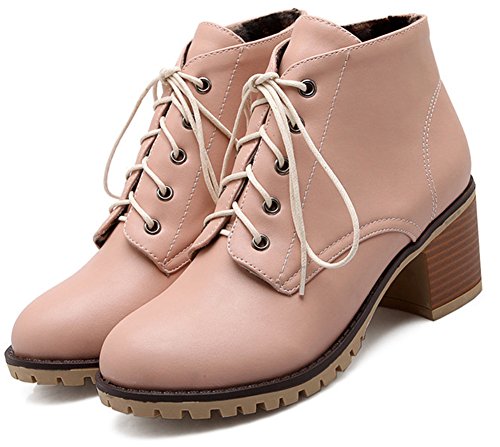 Binding : Apparel Product Description This pair of shoes is for women, brides, girls and young ladies. You will look sexy and stylish when wearing them. The heels measure 2.4 inches. You will look slimmer and slender in their block mid heels. This pair of shoes features ankle high and solid upper. You will look cute in their round toe. The sole is made of good rubber. You will feel comfortable in their soft bottom. They are of high quality and durable. You could match them with dress and jeans. The lace up closure is easy to wear it. They are of high quality and durable. Come on and take them away! 0