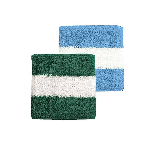 Striped Cotton Terry Cloth Moisture Wicking Wrist Band 2 Pk Blue/Kelly One Size