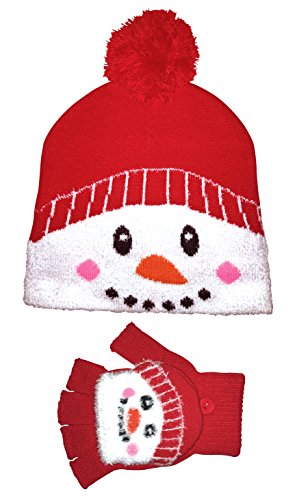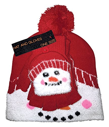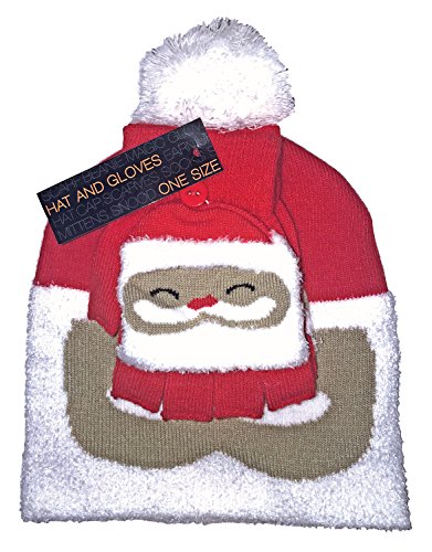 Binding : Apparel Product Description Kids Christmas Hat and Gloves Set If you are looking for a festive hat and gloves set that will keep your children warm and full of Christmas spirit then consider this Santa themed kids bobble hat and converter gloves set. Both the hat and gloves have a Santa or Snowman face printed on the front of them. The hat has a pom pom on the top of it whilst the gloves are convertible from fingerless gloves to mittens whenever your child chooses. This hat and gloves set comes in one size and is suitable for children between the ages of 3-6 years. This set is made from 74.4% acrylic 22.5% polyester 2% elastodiene and 1.1% elastane. This set is safely machine washable. Extra Product Details * Kids hat and gloves set * Christmas themed * Pom pom hat * Converter gloves * One size * 74.4% acrylic 22.5% polyester 2% elastodiene and 1.1% elastane * Machine washable 0