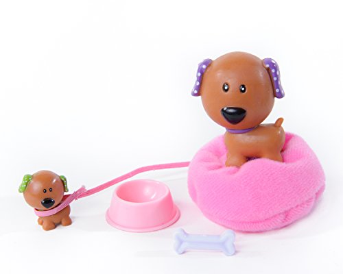 - Includes a 1.75" Buddy dog, a .5" Dottie and 1"x1" bean bag bed