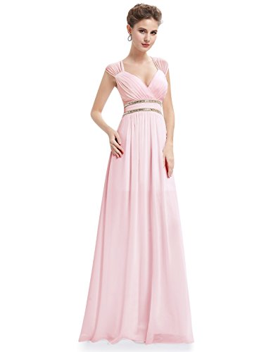 Channel your inner Grecian goddess in this flowing gown! We think this design is the perfect prom dress but really we could see it being worn to weddings, military balls, or any other formal affair. Style your hair in a loose braided up-do and pair with lots of gold jewelry to solidify your goddess status. This dress features a beautiful ruched v-neckline and open back. The empire waist is accentuated with two bands of beautiful gold beading, and the skirt flows as if you were floating on Mount Olympus. This dress is fully lined and padded enough to make wearing a bra optional. The dress is slightly stretchy and a concealed side zipper up the back secures the dress in place. Material: 100% Polyester Dress Care: Hand wash in cold water Packaging: Our dresses are folded for faster shipping. Please use steam to remove any wrinkles upon arrival.Feature