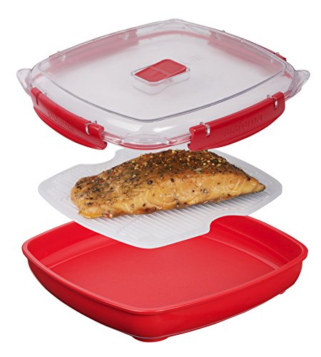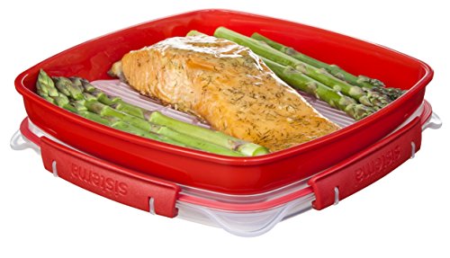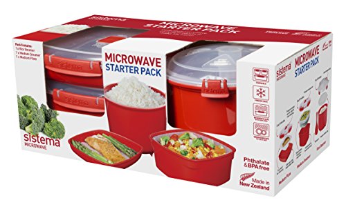 Sistema 1130 Microwave Cookware Starter Pack Includes Plate Steamer and Rice Steamer, Red