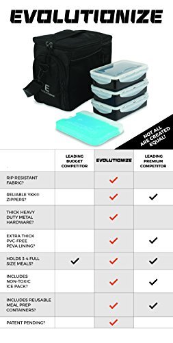 -. Feature : FULL SIZE, ULTRA VERSATILE - EDC Meal Prep Bag comes with 3 of our top selling full sized meal prep containers, and one large non-toxic gel pack. Separately insulated top compartment fits an optional 4th container, or other food items, at a separately controlled temperature. / COMPACT DESIGN + HIGH STORAGE - When designing the EDC bag we felt other bags were either too bulky or were just too small. For that reason we built from scratch the high capacity yet sleek design you see today. The end result is a highly versatile meal management solution that insulates up to 4 meals, 2 protein shaker cups, and several collapsible mesh pockets for everything else. / PREMIUM HEAVY DUTY MATERIALS - Diet success doesn't come from taking days off, so we built this bag to survive the daily grind. Super thick PEVA inner lining, EPA foam, metal hardware, all wrapped in a thick ultra-strong polyester. / 3X INSULATED COMPARTMENTS - Versatility and flexibility should be key for any lunch box solution. Three independently accessible compartment systems allow you to organize your meals, supplements, proteins, shakers, fruits, and utensils. Side pocket are perfect for keeping water bottles, fruit, shaker cups. Top compartment is great for snacks, nuts, berries, supplements, or just a fourth container of food. / 5 STAR EXPERIENCE GUARANTEE - We're very confident you'll absolutely love your EDC Meal Prep Bag - or any our other products! If somehow you aren't 100% satisfied, just contact us! We are happy to help!