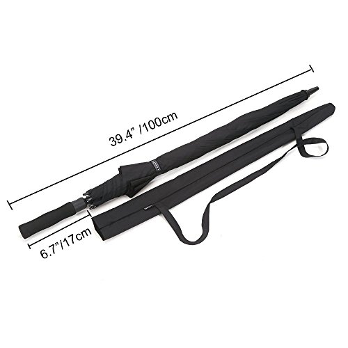 -. Brand : G4Free -. Feature : THE ULTIMATE GOLF UMBRELLA With a 62-inch oversize canopy and heavy duty design the Minowl Ultimate Golf Umbrella is an ideal companion for golfers, the business professional or for daily life. With its sleek all black design, comfortable EVA grip, sturdy frame and auto open mechanism, the Minowl Ultimate Golf Umbrella is perfect in a metropolitan city or a sports field! / PROTECTS FROM THE ELEMENTS Never get caught in the rain (or sun!) again. The Minowl Ultimate Golf Umbrella will protect you from anything that mother nature can throw at you; rain, hail or shine. The canopy uses ultra water resistant 190T pongee micro-weave fabric. This silk derived material is lightweight, mold resistant and quick drying with SPF 50+ protection (blocks 99.95% of sunrays). / YOU (WON'T) BE BLOWN AWAY The double-canopy design and hardened steel frame will ensure that your umbrella is VIRTUALLY WINDPROOF. Wind will simply not break it. Unlike single canopy umbrellas, the double-canopy design creates a vent during where wind can pass through, making the umbrella much easier to handle in harsh conditions. / OPENS AND CLOSES FAST Automatic Open functionality ensures that there will be no delay to your comfort. Fast and reliable automatic opening and closing function. Simply press the button on the handle to open. / LASTS A LIFETIME We engineer our umbrellas to stand the test of time. The Ultimate Travel Umbrella is constructed with hardened stainless steel coated in high-grade black resin. For the ribs and tips we use fibreglass, which is flexible and durable. The canopy is created using chain stitching with nine stitches per inch. ? 100% MONEY BACK GUARANTEE. We stand behind the durability of our goods and offer an unconditional guarantee against any defects in craftsmanship. -. IsAutographed : 0 -. IsMemorabilia : 0 -. Label : G4Garden -. Manufacturer : G4Garden -. ProductGroup : Sports -. ProductTypeName : OUTDOOR_RECREATION_PRODUCT -. Publisher : G4Garden -. Studio : G4Garden -. Title : G4Free Golf Umbrella 62 Inch Large Oversize Windproof Waterproof Auto Open 210T Microfiber Fabric Stick Umbrella