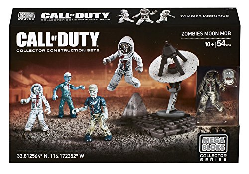 -. Feature : Pack includes four highly detailed, moon Zombie micro action figures / Includes astronaut Zombies with cracked helmets and lunar technician Zombies / Buildable moon environment, including lunar radar dish / Zombies feature greater articulation and detailing like holes for impaling, for highly customized display / Collect and combine with other Mega Bloks Call of Duty sets and build the mission!