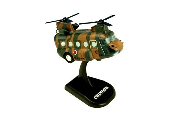 チヌークをプルバックマシーンで再現しました。遊び終わった後は専用のスタンドを使用し、飾って楽しむこともできます。