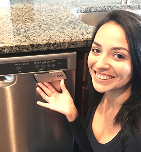 Premium Metal Dishwasher Magnet Clean Dirty Sign | Contemporary Indicator - Best Kitchen Gadgets for All Dishwashers - For Home or Office Organization Using Padded Magnets or 3M Tabs (Black Lettering)