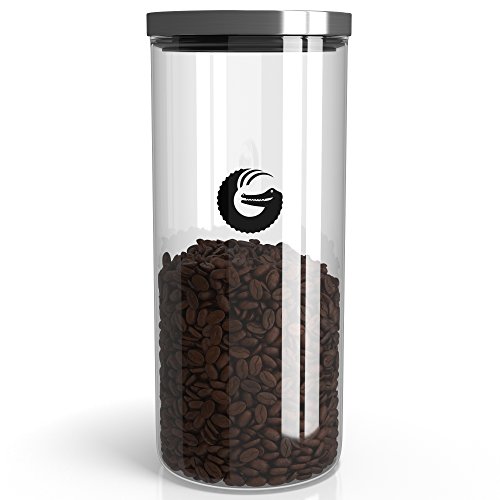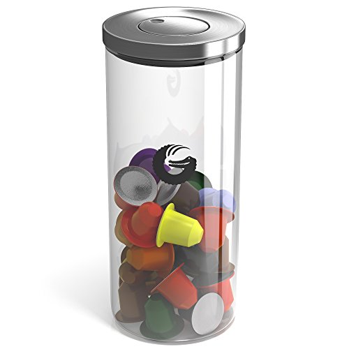 Coffee Gator Glass Storage Container – Plus Hacks eBook – Display Jar for Pods, Beans and Grounds with ‘Pop and Lock’ Lid – 45 Ounce, 35 Nespresso