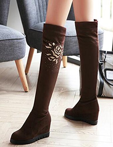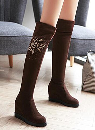 Binding : Apparel Product Description When you walk in the street or take part in some special occasions, do you want to be charming and attractive among others? Or are you tired of wearing the same booties with others? How could you miss these trendy outfits? This pair of comfy boots is made pull on design. You will like their antiskid, durable and waterproof design. With the wedge heel, you could be at ease when you dress in the comfortable shoes. Many people are in favor of its casual, fashion and elegant style with the closed round toe, faux suede, above knee high and solid color. In the fall and coming winter, it's a must. They can fit any formal occasions, like wedding, party and club. With one, you will be the focus of fashion. Young ladies can buy one with your close friends. They are a wonderful gift. They are also easy-matching. Choose one suitable size so that it could fit you well. Welcome to our store. IDIFU?is?a?registered?trademark?in?the?USA. We always work on helping every fashion lady to be unique and different. As a trendsetter, YOU ARE DIFFERENT! 0