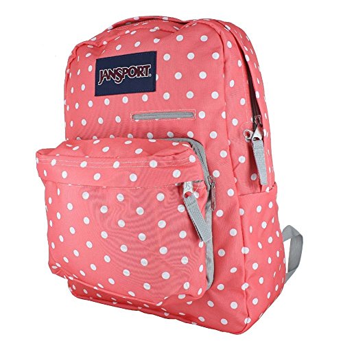 JANSPORT DIGIBREAK CORAL SPARKLE WHITE DOTS BACKPACK