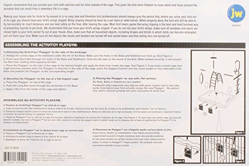 -. Binding : Misc. -. Brand : JW Pet -. EAN : 0618940310402 -. Feature : A fun and healthy habitat for your parakeet / Constructed from sturdy brightly colored plastic / Dishwasher safe / Activate your bird's body, mind and soul! / Suitable for parakeets only -. IsAutographed : 0 -. IsMemorabilia : 0 -. Label : JW Pet Company -. Manufacturer : JW Pet Company -. Model : 31040 -. MPN : 31040 -. NumberOfItems : 1 -. PackageQuantity : 1 -. PartNumber : 31040 -. ProductGroup : Pet Products -. ProductTypeName : PET_SUPPLIES -. Publisher : JW Pet Company -. Size : 12'' length x 8'' width x 11.5'' height -. Studio : JW Pet Company -. Title : JW Pet Company Activitoys Play Gym Bird Toy -. UPC : 618940310402 -. Warranty : no