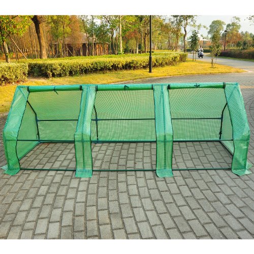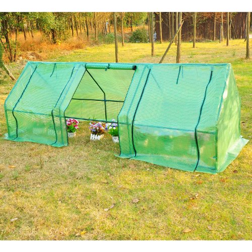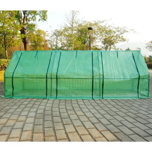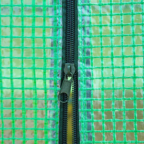 -. Feature : Zipper door allows easy access and great ventilation for plants / Protects plants from extreme hot or cold weather / Perfect for at home gardening / Made of PVC covering over a powder coated steel frame / Overall Greenhouse Dimensions: 9'L x 3'W x 3'H