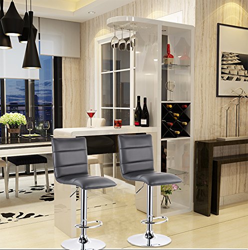 -. Feature : Quantity: set of 2 ( you actually get 2 grey stools ) / Adjustable pneumatic height, 360 degree chair swivel.adjustable height: 23.6-31.9" / Seat has soft, padded back support and chrome arms rests. / The built-in footrest provides support and comfort while seated / Very easty to assemble, packed with a instruction
