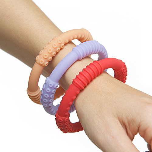 INCREASE YOUR BABY’S MOTOR SKILL DEVELOPMENT WITH OUR SENSORY RINGS - With 4 DIFFERENT SURFACES and 3 colors the TaneeLia rings are designed to help stimulate your baby's development of his or her touch and feel senses in many different ways. The silicone rings are big enough to grab with both hands, have fun various textures, are flexible enough to pull and twist, are STRONG ENOUGH TO NOT BREAK and SAFE TO CHEW ON! Perfect even for 2-3 years old that needs something to chew.