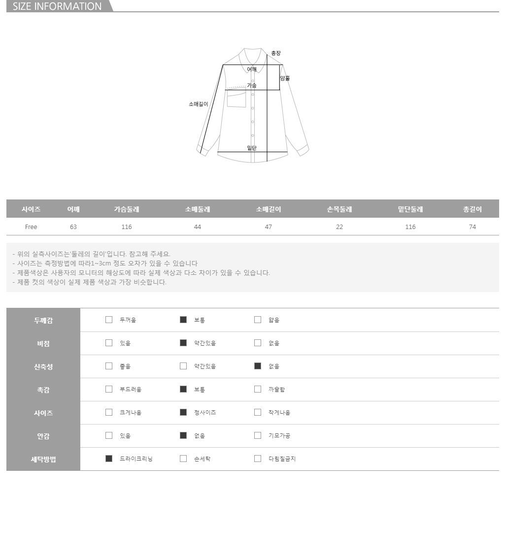 여유있는 핏감으로 체형커버에 도움을 드려요 단독으로 착용해도 멋스럽고 레이어드 해서 착용하기에도 좋은 셔츠!
