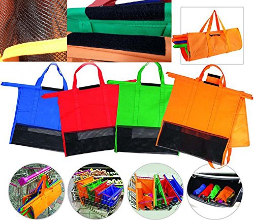 Bekith 4 Pack Trolley Bags – Eco Friendly Reusable Grocery Bags Perfect For Shopping Carts – Detachable, Foldable & Reusable Shopping Bag with Velcro