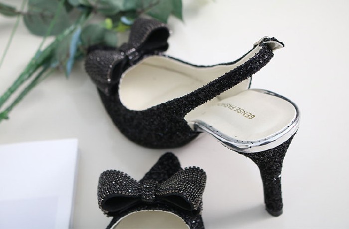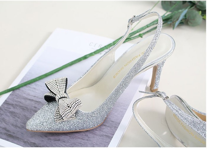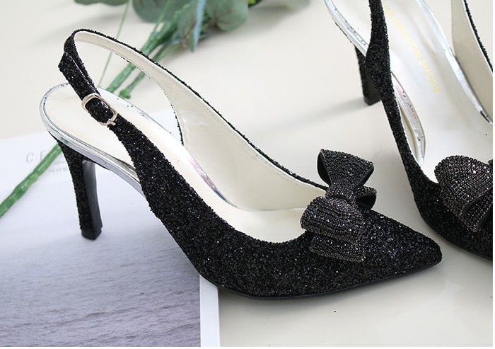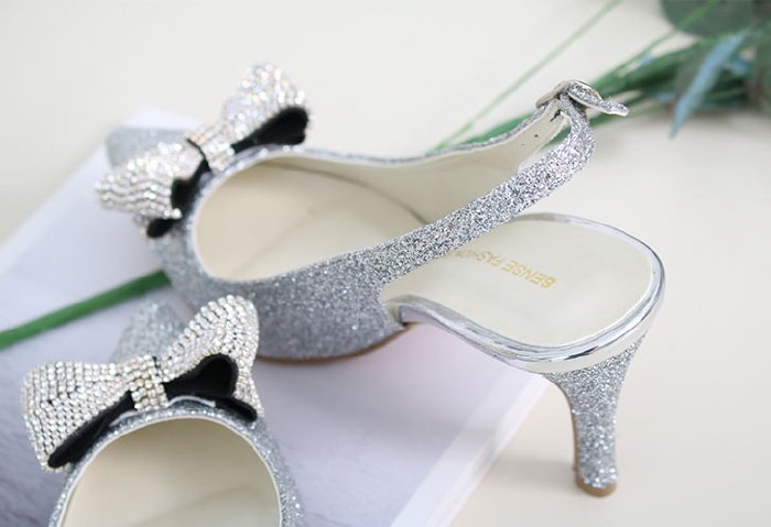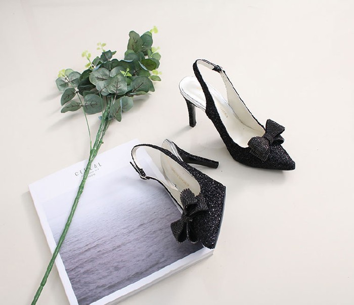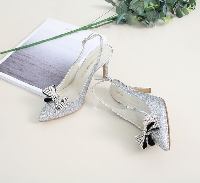 商品名:パンプス レディース ポインテッドトゥ スリングバック リボン キラキラ 2018 春 ファッション 靴 婦人靴