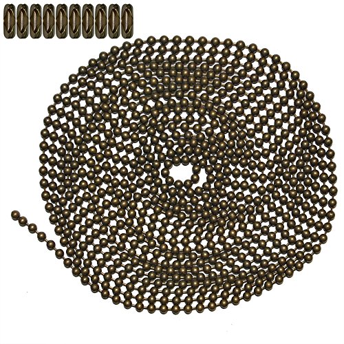 10 Foot Length Ball Chain, #6 Size, Medieval Brass, & 10 Matching Connectors