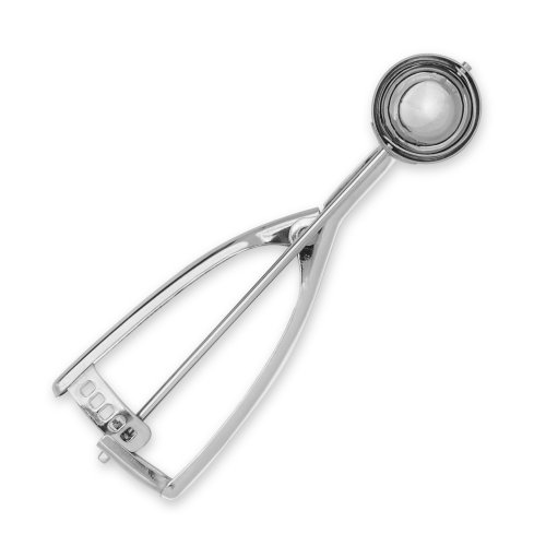 - Feature : VERSATILE FOR MULTIPLE USES - You can use this scoop to create beautifully rounded balls of ice cream, cookie dough, sorbet, fruit, mashed potatotes, meatballs, cupcakes and more! / CHEF QUALITY - This gleaming 18/8 stainless steel cookie scoop and ice cream scoop is your culinary solution for elegant food prepration and professional results. You can be confident of food safety, strength, and durability with this chef quality kitchen tool. / EASY TO USE - Thanks to the innovative cog-and-ratchet system (no springs!) this scoop relieves pressure on your wrist and hand. With no spring, this perfect scoop glides easily and does not require intense effort or tireless hand strength. Scoop after scoop, working through a large bowl of dough is a breeze. Plus, the scoop fits comfortably in your left or right hand. / DISHWASHER-SAFE, ECO-FRIENDLY- This ice cream scoop and cookie scoop is 100% recyclable with no plastic parts. Even our gift packaging is 100% recyclable. In addition, our stainless steel scoop, unlike inferior stainless steel scoops, is stain-resistant and won't pit, rust or corrode. It is also dishwasher safe, which means it will retain its gleaming shine wash after wash! / ORDER TODAY - This ice cream scoop and cookie scoop makes a great bridal shower gift, wedding gift, engagement gift, anniversary gift, birthday gift, hostess gift, housewarming gift, or a personal gift as well - and it comes in a beautiful plush royal blue velvet bag and is placed in an elegant gift box! Buy with confident - Jenaluca stands behind these scoops with its Lifetime Guarantee.