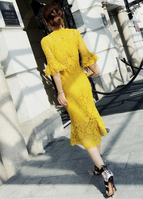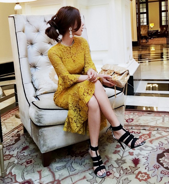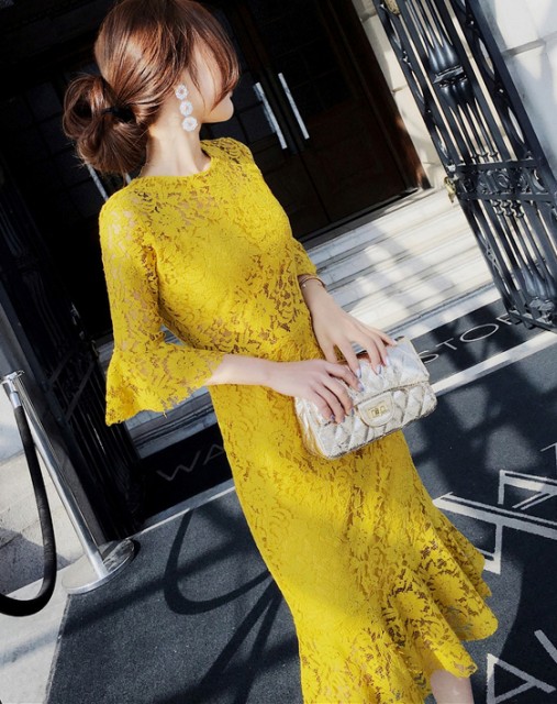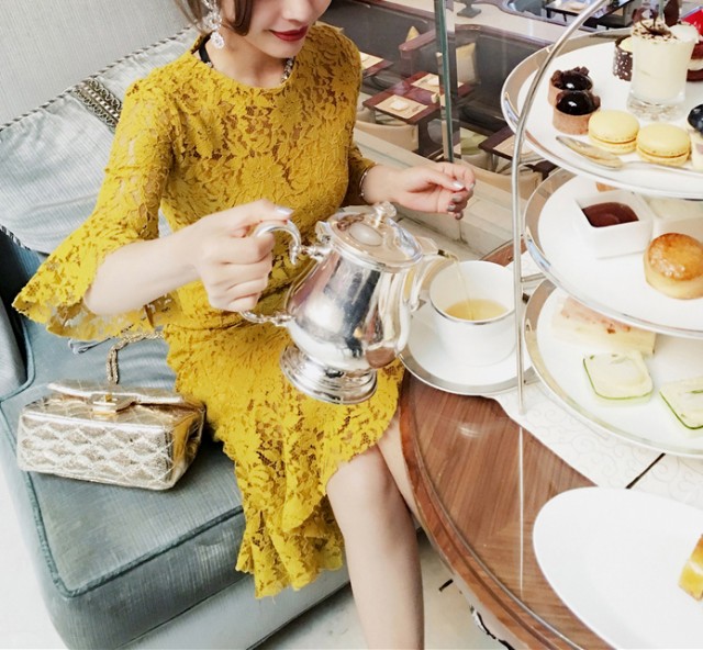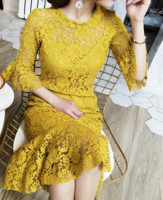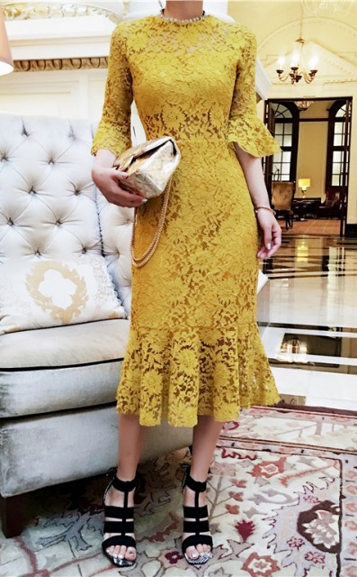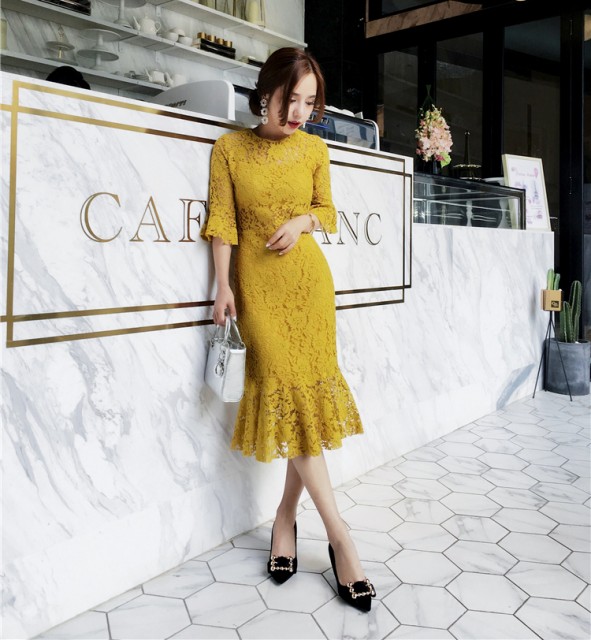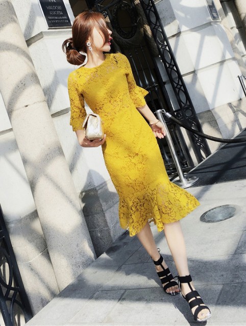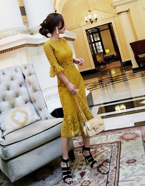 フィットしたタイトなドレス。