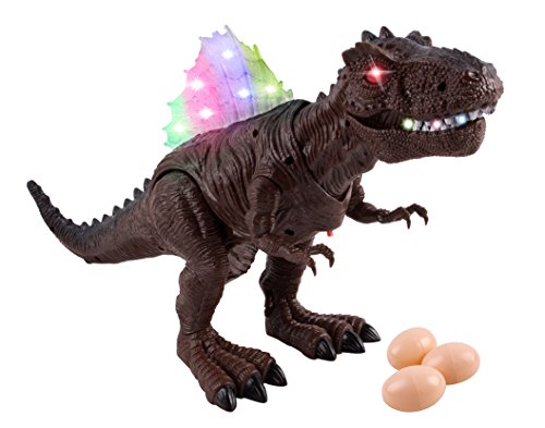 -. Title : Toy Dinosaur Spinosaurus Egg Laying Battery Walking Dinosaur 11" Tall Toy Figure With Lights & Sounds, Real Movement, Lays Eggs (Brown Color)