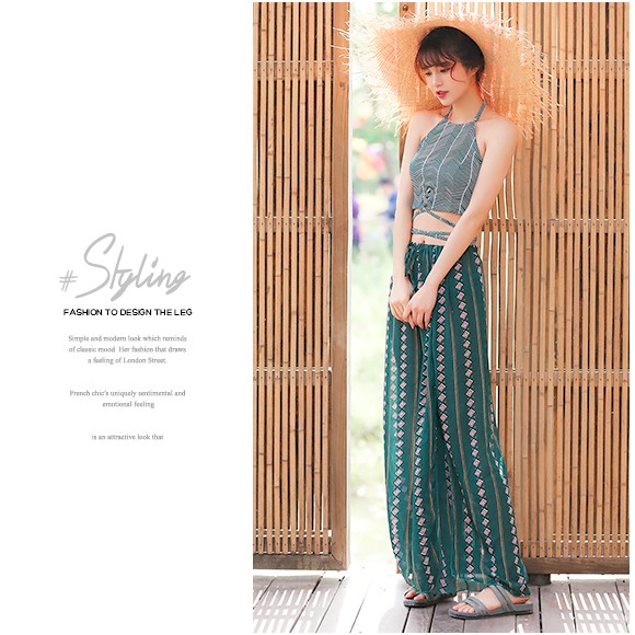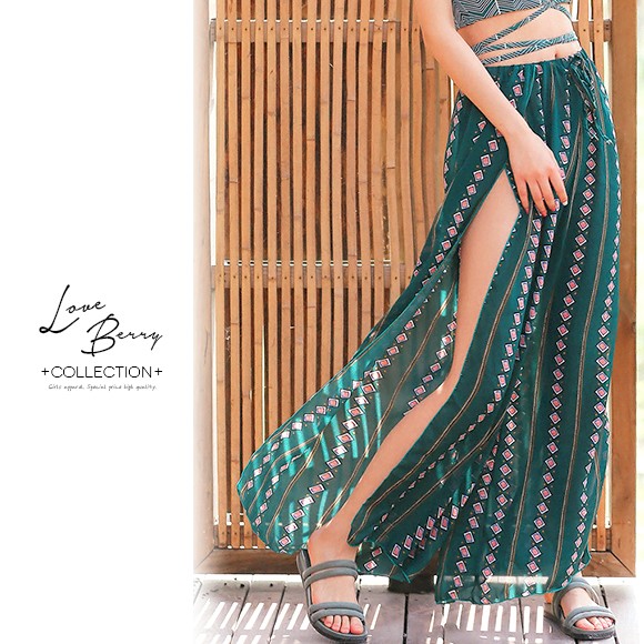 涼し気な素材のスリット入りのワイドパンツ付きなので