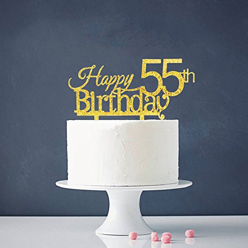 INNORU® Happy 55th Birthday Cake Topper - 55 Anniversary Birthday Gold Glitter Party Cake Decoration