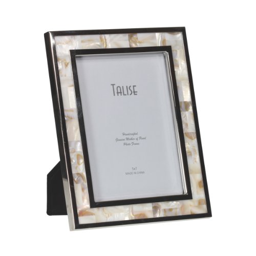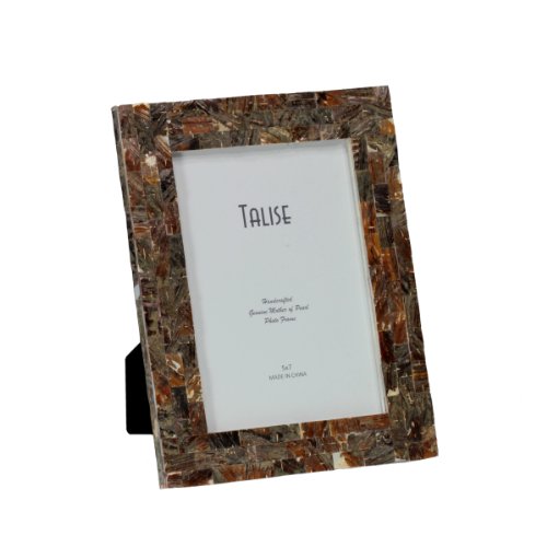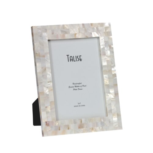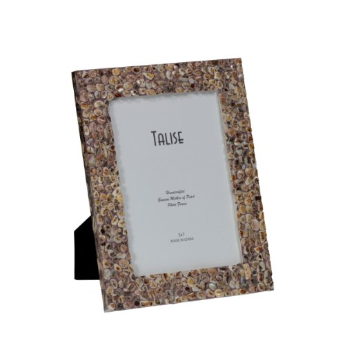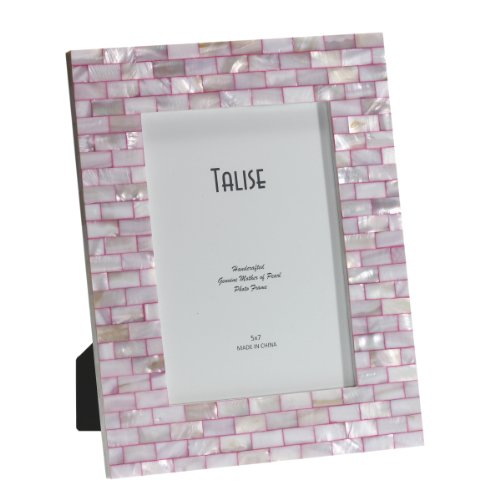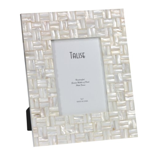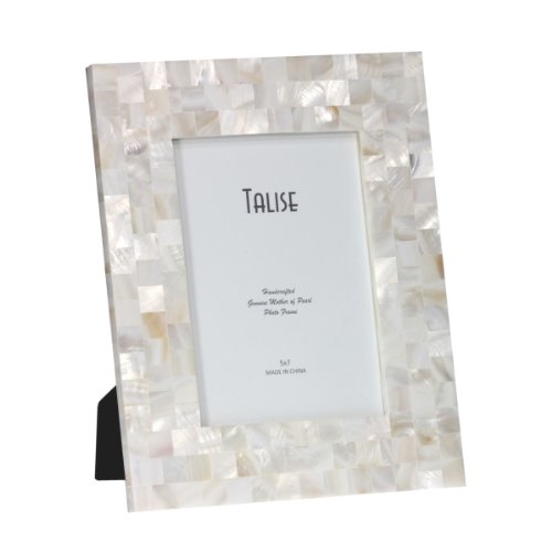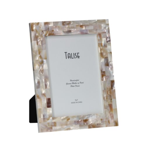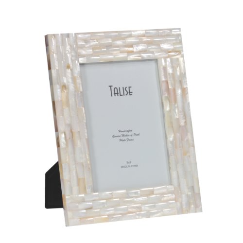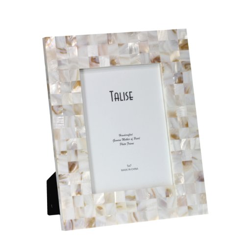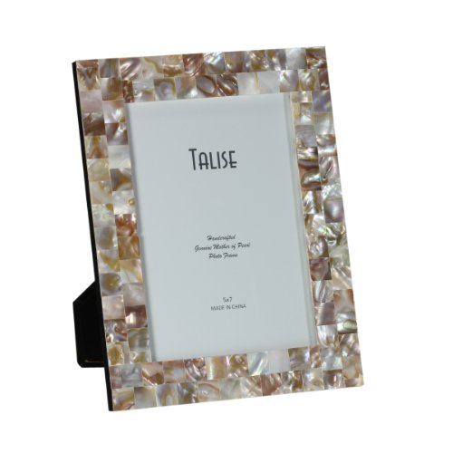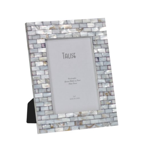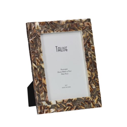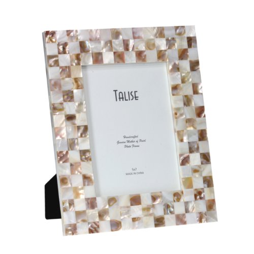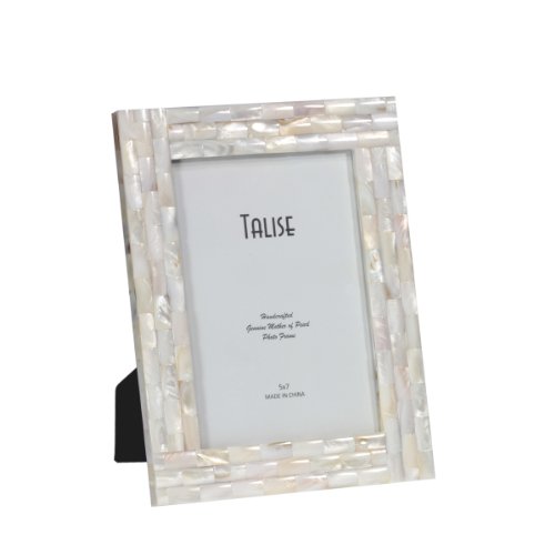 A smart looking frame patterned with rows of genuine mother of pearl barrel shaped tiles in pearlescent shades of ivory, bisque, champagne and white. This handsome frame lends a nice home for your favorite photo.Feature