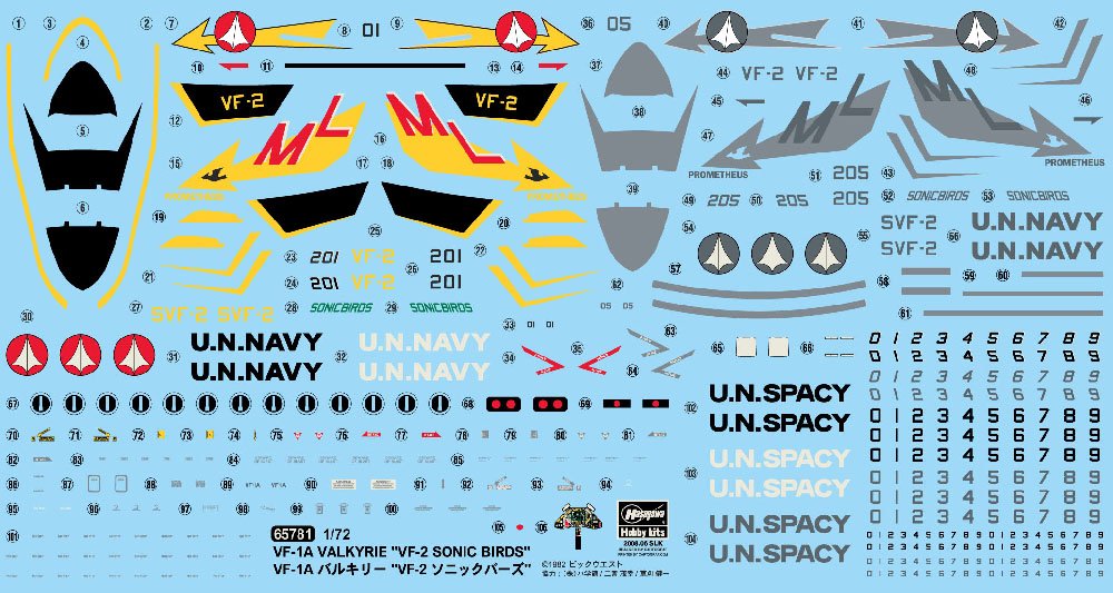 Macross VF-1A Valkyrie VF-2 Sonic Birds 1/72 Scale by Hasegawa