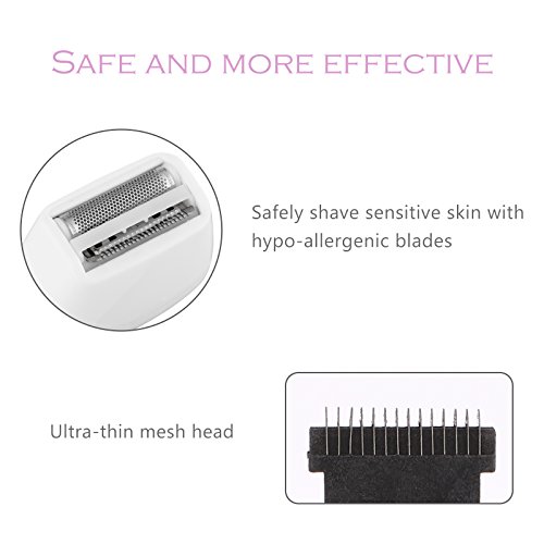 The shaver adopt ultra-thin mesh head, reduce the area where the blade contact wich the skin,avoid scratching the skin. It can be used as 90 degrees to remove hair, easy to slide, safe and more effective