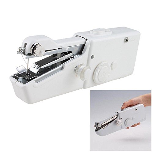 -. Feature : 8 by 2-1/2 by 1-1/8-inch / This package contains the sewing machine, bobbins, needles, thread spindle, needle threader and complete instructions. / Feature: 1. Portable and compact, excellent for on-the-spot repairs 2.Includes sewing machine, bobbins, needles, thread spindle, needle threader, instructions / 3. Requires four AA batteries or a power adapter - not included 4. Great for silks, denim, wool, leather and crafts / This hand held sewing machine compact and portable; excellent for on-the-spot repairs and is lightweight and powerful. Repair drapes without taking them down; repair clothing without taking it off; repair bedding without stripping the bed and so much more. This battery operated machine is great for silks, denim,wool, leather and crafts. Requires four AA batteries or a power adapter (neither is included).