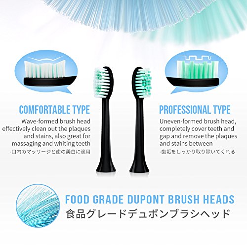 3カンフォタブルタイプブラシヘッド一つがウェーブ型で歯ぐきをいたわりながら歯垢をしっかり除去できます。口内のマッサージと歯の美白にもです。2プロフェショナルタイプブラシヘッド一つがアンイーヴン型で歯ぐきのキワを優しく包み込み、歯垢をしっかり取り除いてくれます。毛先がアメリカデュポンナイロン材質で歯と歯ぐきにフィットし、より奥深くまでクリーニングできます。高密度に植えられた円柱形毛先が敏感な歯と歯茎に優しいで