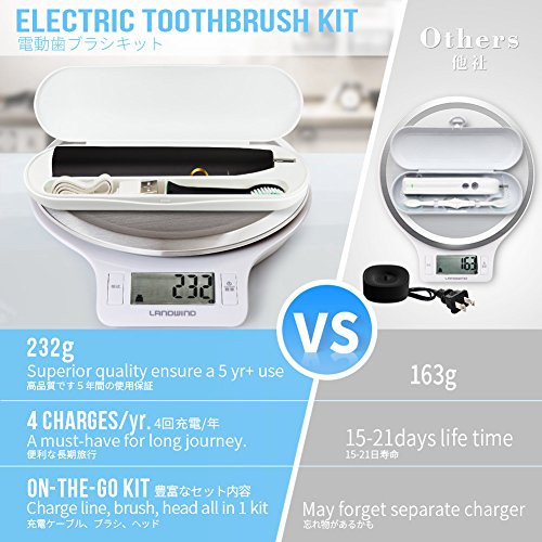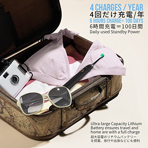 LANDWIND Shiningのこの電動歯ブラシが2,000 mAhの超大容量のリチウムバッテリーを搭載し、一日2回の歯磨きである場合、フル充電状態では約100日使用可能です。たった6時間でフル充電して長持ち!一年には4回だけ充電必要です。旅行や出張などにも便利です。マイクロUSBケーブル(充電器を除き)がどの電源にも対応しています。