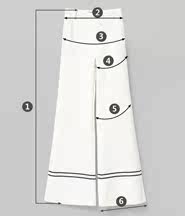| 尺码 | ①裤长 | ②腰围 | ③臀围 | ④大腿围 | ⑤膝围 | ⑥脚围 | ⑦前裆 | ⑧后裆 | ||